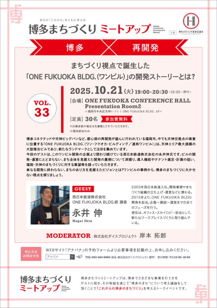 博多まちづくりミートアップは、博多内外でさまざまな事業を行う方をゲストに招き、その取り組みを通して“博多のまち”について考え議論をして頂くことで、「これからの博多のまちづくり」を考えるトークイベントです!