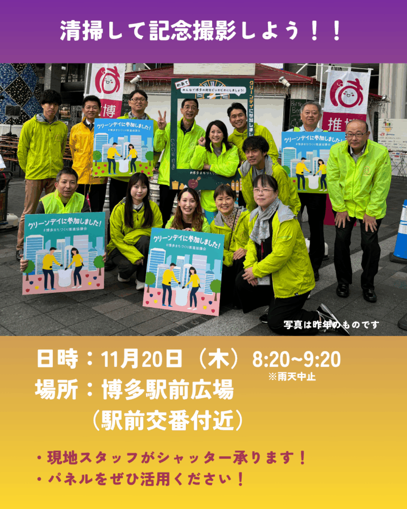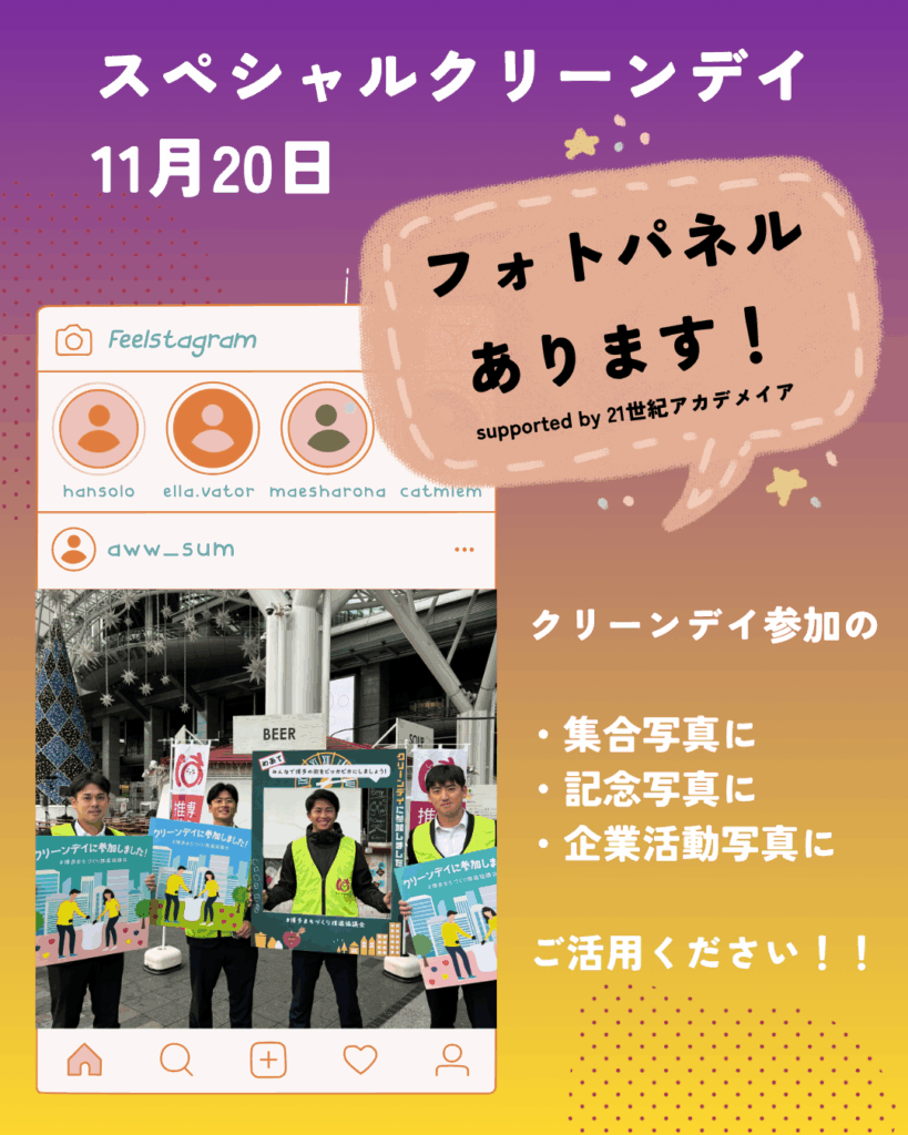 11月20日(木)に予定しているスペシャルクリーンデイにてフォトパネルをご用意します!